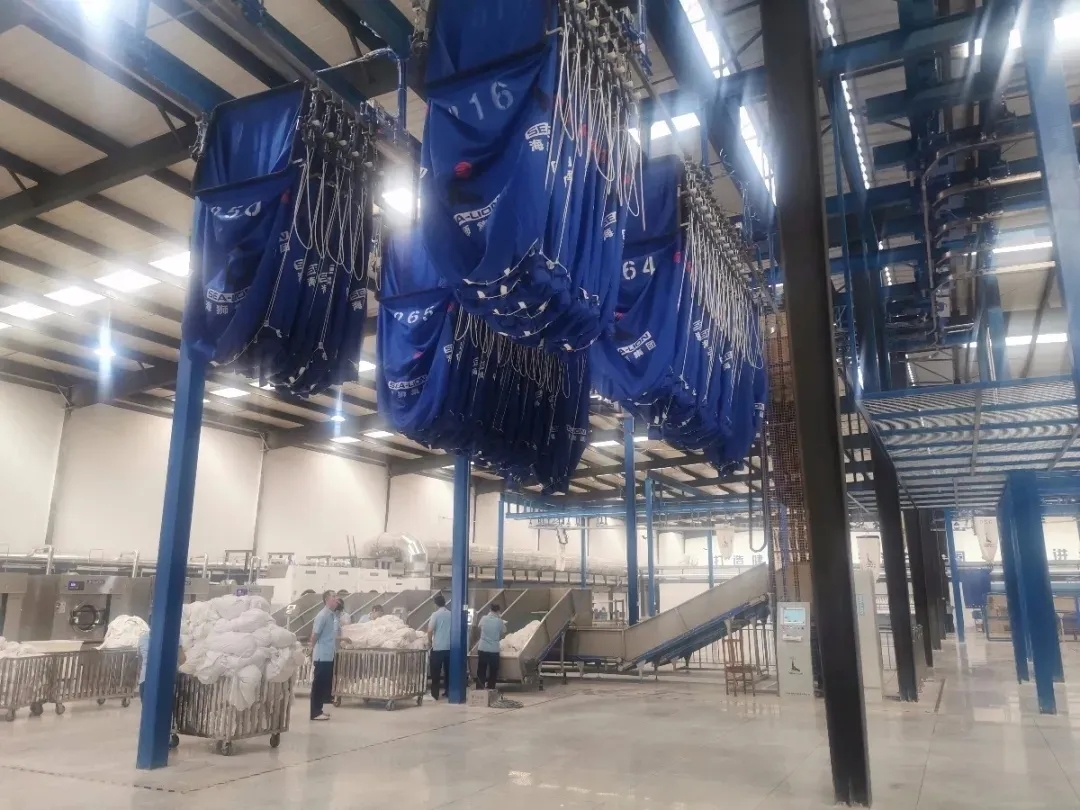工廠采用了海獅先進的洗衣龍、吊袋等設備,簡化流程,增強洗滌質量,實現(xiàn)布草抑菌、洗滌100%達到國家安全指標,布草服務過程100%可溯源,確保每一批布草干凈整潔,保障每一位用戶的健康安全。