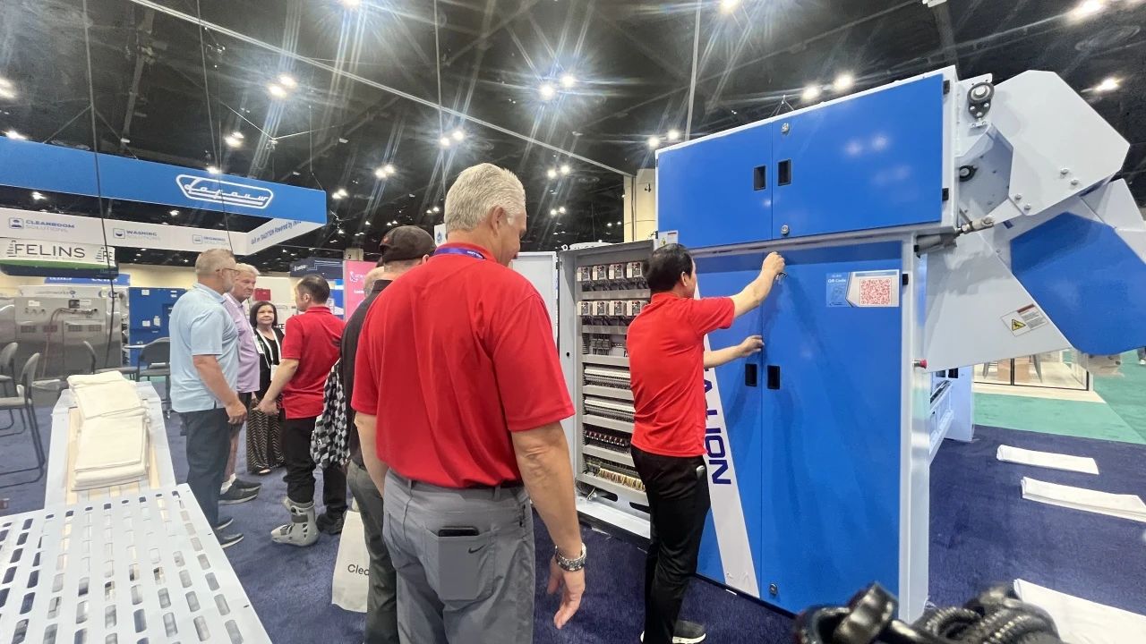 “Titanium”鈦系列洗脫機(jī)與烘干機(jī),聚焦高效洗滌與節(jié)能降耗雙重優(yōu)勢(shì)。通過(guò)精準(zhǔn)控溫、智能水循環(huán)系統(tǒng)及變頻電機(jī)技術(shù),實(shí)現(xiàn)單位時(shí)間內(nèi)更高洗滌量和烘干量的同時(shí),大幅降低水、電、蒸汽消耗,為用戶(hù)帶來(lái)經(jīng)濟(jì)與環(huán)保兼具的卓越體驗(yàn) 參展人士對(duì)這一系列設(shè)備表現(xiàn)出了濃厚興趣,在現(xiàn)場(chǎng)海獅人員的詳細(xì)操作講解下,他們對(duì)中國(guó)制造的研發(fā)制造實(shí)力有了更深刻的認(rèn)識(shí),紛紛為海獅機(jī)械的創(chuàng)新能力點(diǎn)贊。