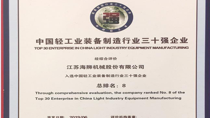 今日江蘇海獅機械股份有限公司榮獲了中國洗滌機械行業(yè)十強首位,中國輕工業(yè)裝備制造行業(yè)三十強企業(yè)第8位,中國輕工業(yè)科技百強企業(yè)第23位為加快建設(shè)強國,推動輕工裝備制造業(yè)做大做強,本著嚴謹、公正、科學的原則,中國輕工業(yè)聯(lián)合會組織開展了2018年度“中國輕工業(yè)裝備制造行業(yè)三十強企業(yè)”、“中國輕工業(yè)科技百強企業(yè)”評價