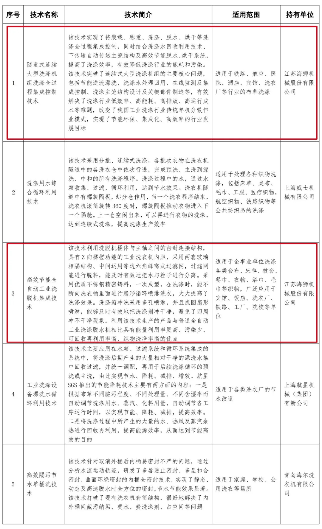 2020年11月16日,水利部、國家機(jī)關(guān)事務(wù)管理局關(guān)于公布國家成熟適用節(jié)水技術(shù)推廣目錄(2020年)的公告正式發(fā)布,為貫徹節(jié)水優(yōu)先方針,落實《國家節(jié)水行動方案》目標(biāo)任務(wù),強(qiáng)化節(jié)水科技創(chuàng)新引領(lǐng),促進(jìn)水資源節(jié)約集約利用,水利部、國家機(jī)關(guān)事務(wù)管理局共同征集了洗滌設(shè)備、衛(wèi)生潔具、中央空調(diào)等領(lǐng)域的節(jié)水技術(shù)。經(jīng)專家評審、網(wǎng)絡(luò)公示,最后洗滌設(shè)備領(lǐng)域有4家企業(yè)5項成熟技術(shù)被收錄到《國家成熟適用節(jié)水技術(shù)推廣目錄(2020年)》中。江蘇海獅機(jī)械股份有限公司的隧道式連續(xù)大型洗滌機(jī)組洗滌全過程集成控制技術(shù)和高效節(jié)能全自動工業(yè)洗脫機(jī)集成技術(shù)被收錄到國家成熟適用節(jié)水技術(shù)推廣目錄之中。